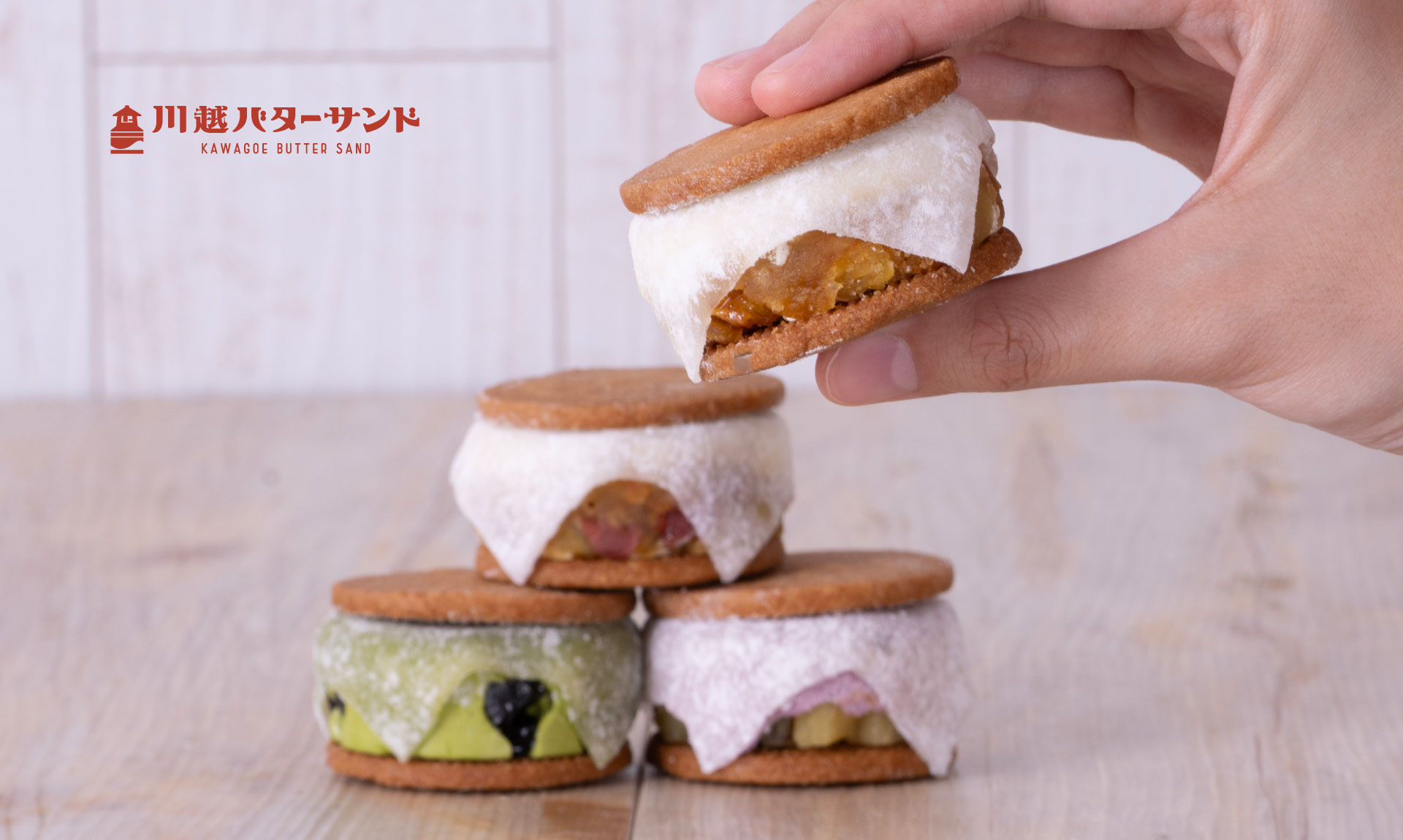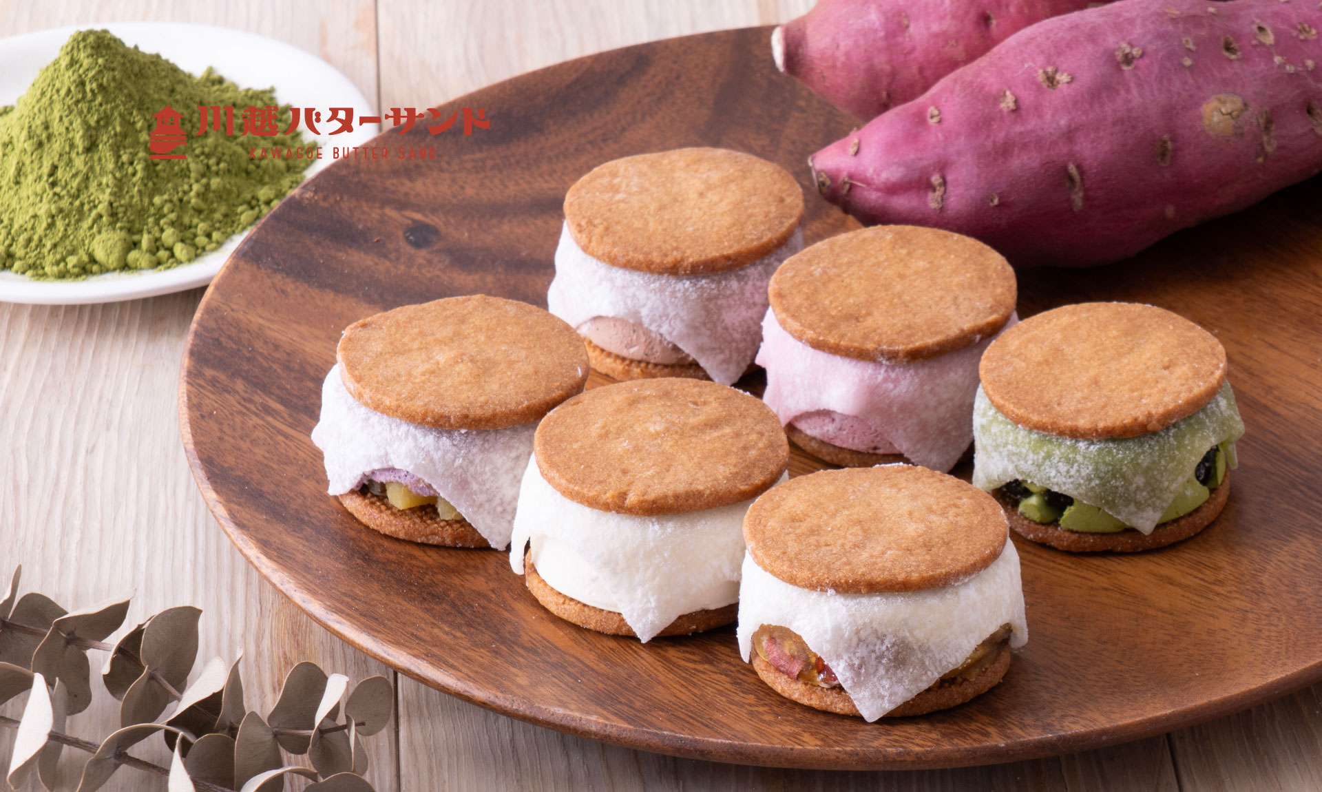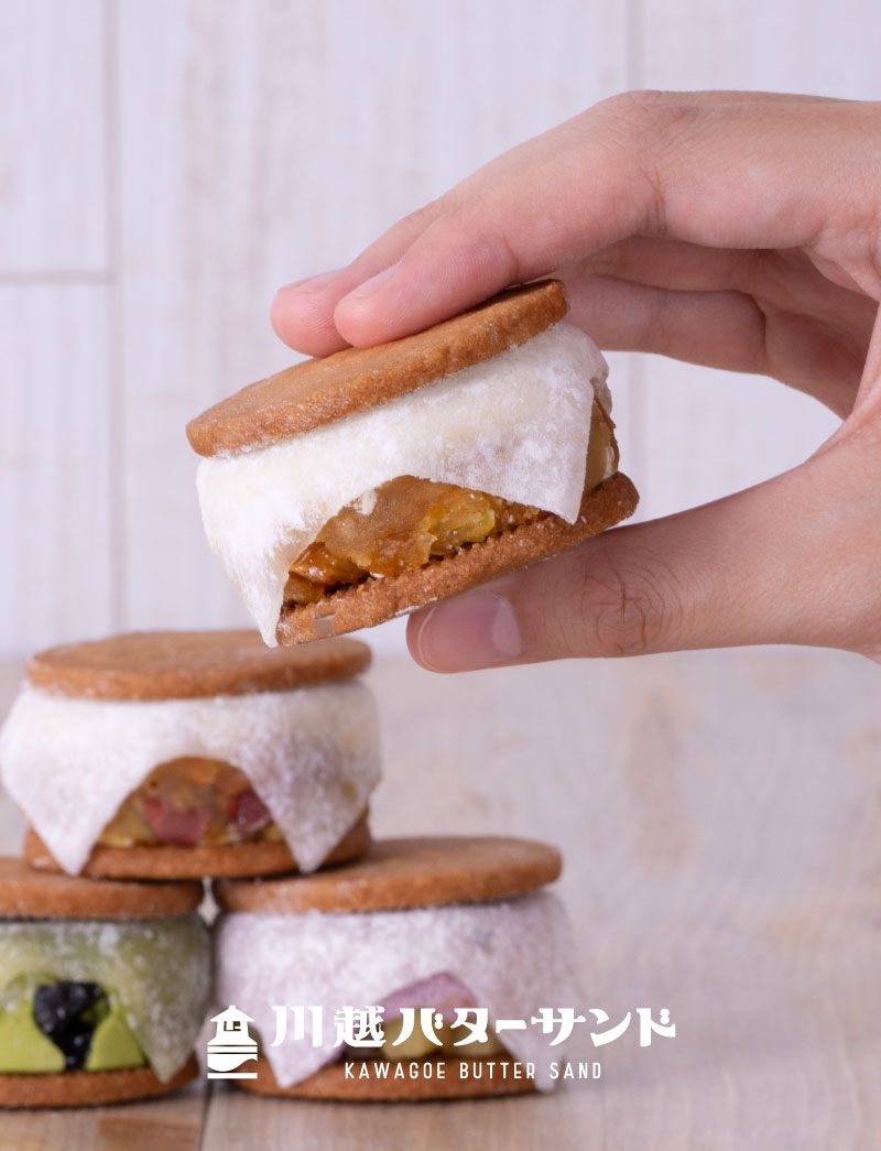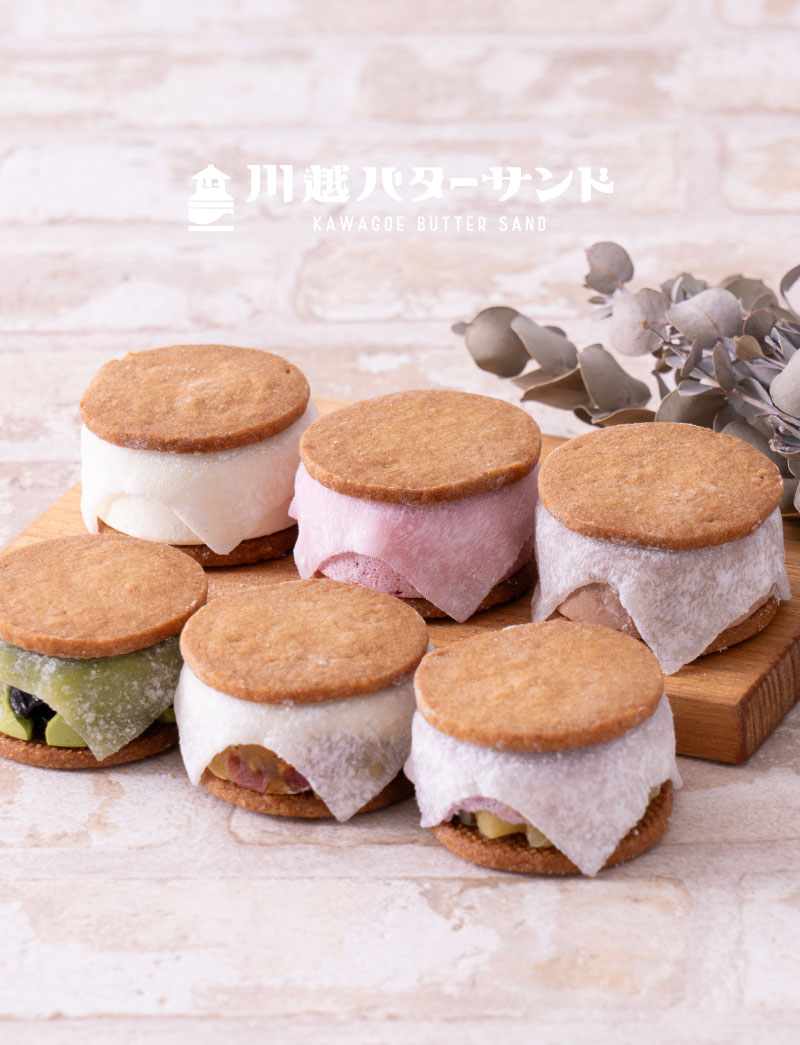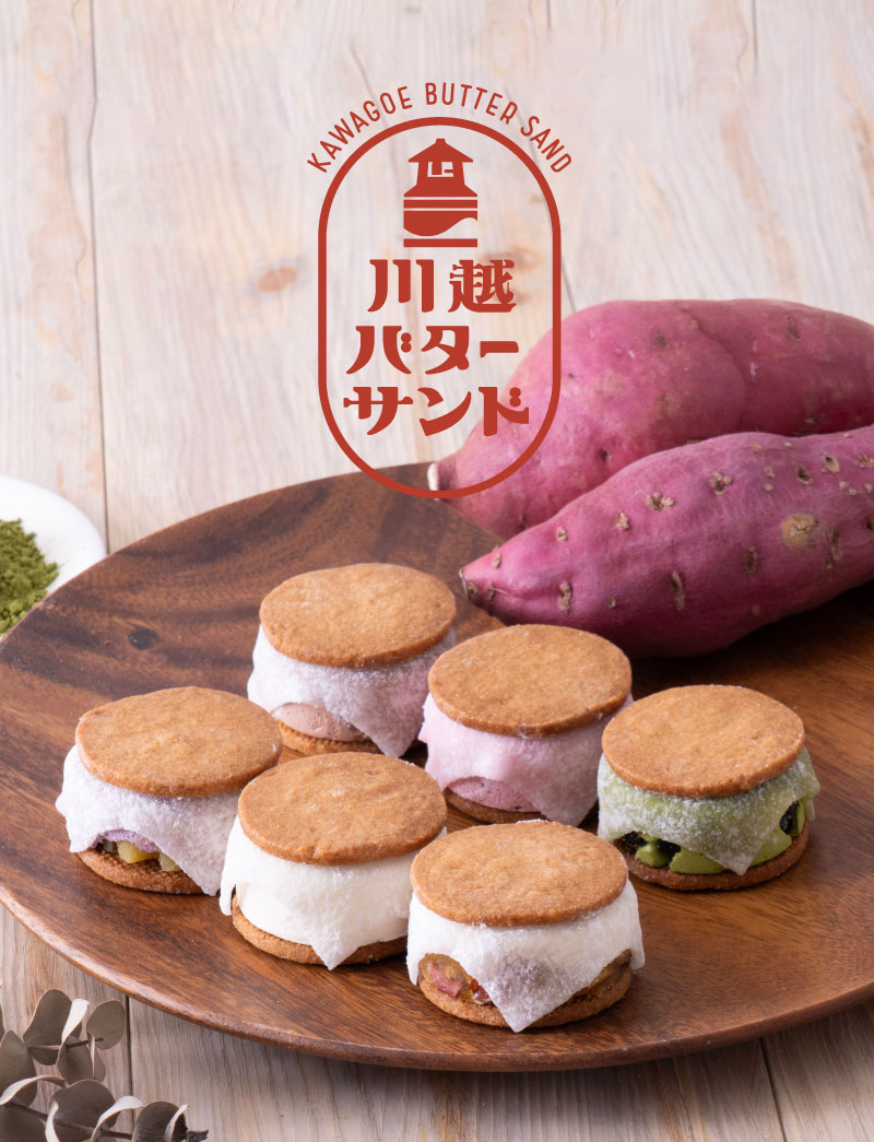 川越いもをはじめ、河越茶など地域ならではの食材を組み合わせ、唯一無二のバターサンドに仕上げました。